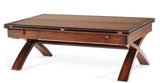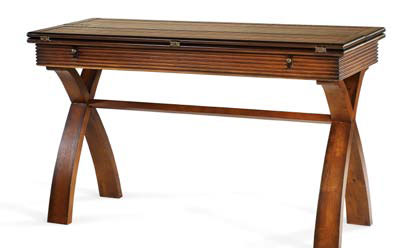 Практичность и красота совмещены в этой очень функциональной коллекции столов. Особенность – разде-ленная на части столешница раскладывается перекидным движением. Это позволяет так увеличить поверх-ность, что столешница столика удваивается и превращается в письменный стол, либо – в маленький обеден-ный столик. Столики изготовлены из твердолиственных пород древесины, покрыты шпоном вишни, украшенымедными деталями. Все столы имеют покрытие под «мускатный орех», прошедшее легкую обработку искус-ственного старения. Внешний вид столов этой серии будет прекрасно сочетаться с разными стилями.Производитель: США-Вьетнам