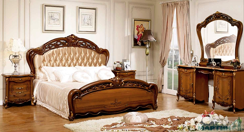 Спальный гарнитур в классическом стиле. Корпус ЛДСП+ МДФ Фасады МДФ Основание кровати ортопедическое основание в комплекте Размеры Кровать 2140*2100*1474 решетка в комплекте Тумба прикр. 632*475*611 Туал. стол 1662*475*760 спальное место (матрас) 1800*2000