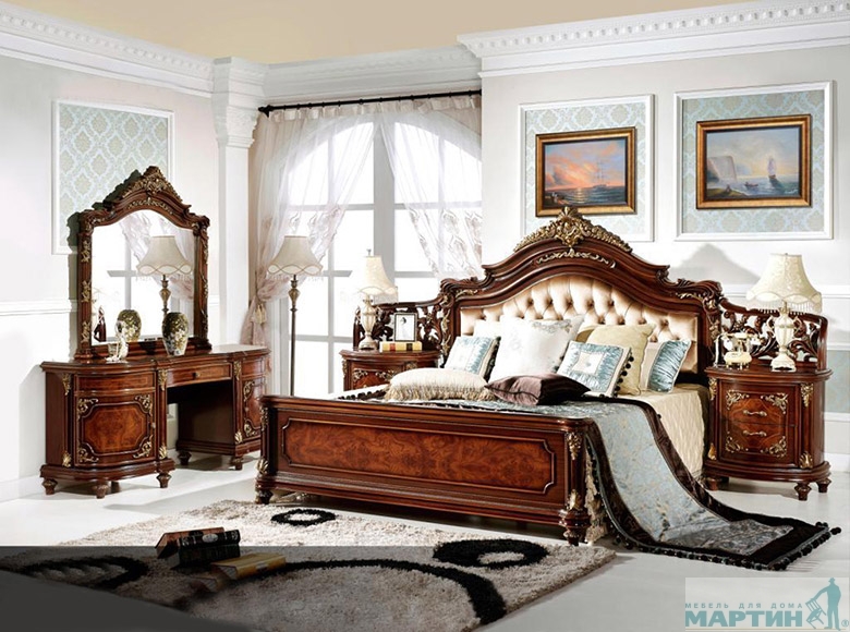 Возможная комплектация: Кровать 180×200 Элиана + Туалетный стол с зеркалом Элиана + Тумба прикроватная Элиана ( 2 шт. ) + Шкаф 6-ти дверный Элиана