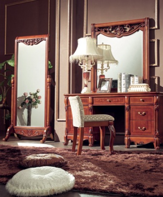 Размеры: кровать - 188*228*133см., тумба - 65*42*68см., туалетный стол с зеркалом - 145*50*76см., гардероб 4-х дверный - 210*64*219см.