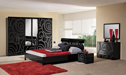Стана – производитель Италия. Цвет: черный, красный. Материал: МДФ, ППУ, лак. Размеры: кровать 180 (160)*200*97 см. , тумба 57*39*49см, комод 102*47*81,5см., шкаф для одежды 182 (273)*56*216см. Стоимость от 41 385 руб. Спальня «Pinta» Комод Pinta Шкаф-купе Pinta Шкаф-купе Pinta2
