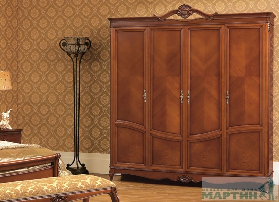 Спальня «Элеонора» Страна-производитель Китай. Материал — массив липы, МДФ. Покрытие — шпон бука, в комплектацию кровати входит ортопедическое основание для матраса размером 180×200см. Все модули продаются отдельно. Стоимость от 48 060 руб.