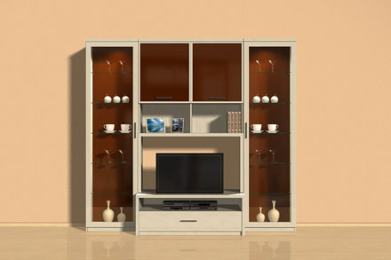 Страна-производитель Россия. Материал: ДСП, стекло. Размеры, мм: 3600*2210 (H)*446 (580). Все модули продаются отдельно. Стоимость 35 975 руб.