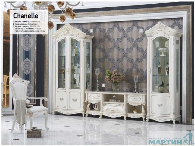 Витрина 2-х дверная 1050×530×21500 Витрина 1-дверная 850×530×2100 Панель под ТВ настенная 1470×1000 Горка напольная 1600×490×6600