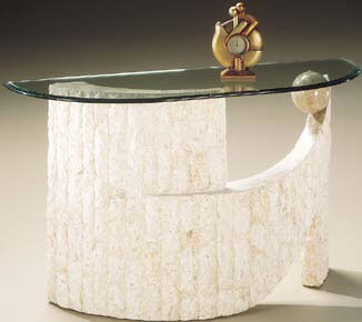 Понте Верда прекрасно подходит для многих актуальных на сегодня нейтральных цветовых палитр в интерье- ре. Это уникальное использование грубо обработанных окаменелостей острова Мактан и отполированного «ископаемого» камня в основании. Интригующий современный дизайн поддерживается фигурной скошенной по краям стеклянной столешницей, легкой и воздушной на контрасте с твердым основанием. Производитель: США-Китай-Филиппины