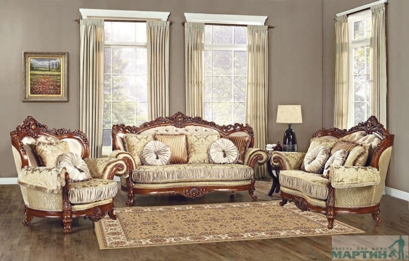 Диван «Милорд» (3-хместный) 2180×1100×1250 Диван «Милорд» (2-хместный) 1800×1100×1240 Кресло «Милорд» 1130×1100×1230 Материалы — натуральное дерево, ткань. Комплект мягкой мебели МИЛОРД фабрика Аванти Китай. Удобный и просторный диван с креслами с необыкновенным красивым дизайном украсит собой любую комнату. Мягкая спинка обеспечивает дополнительный комфорт, а мягкие подушки позволят, при необходимости отдохнуть на диване. Этот набор мягкой мебели выделяется изысканной резьбой и элегантной обивочной тканью серебристо-белого цвета.